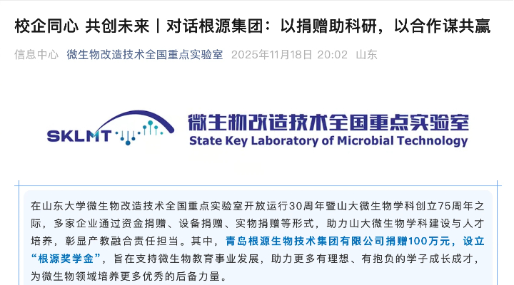 根源集團與山東大學微生物技術國家重點實驗室舉辦校企交流會